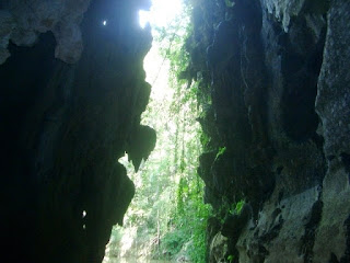 À saída da gruta que visitámos e da qual saímos num pequeno barquinho.